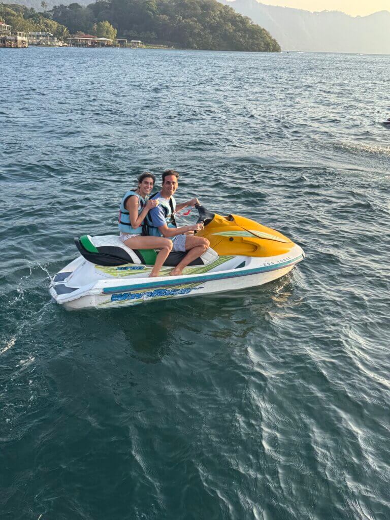 We then drove about 45 minutes to Lake Coatepeque. The lake was lined with different restaurants along the dock who offer various kinds of entertainment and activities. We chose one without a cover charge. We decided to do another lancha tour with the Dweks and Sayeghs; this one would take us a geothermal spring. The boat ride was fun, but the hot springs were very small and not exactly as promised. The men and boys jumped off the boat and enjoyed swimming in the lake for a few minutes. Once we headed back, the adults went jet skiing for 15 minutes each and we began the drive to our new hotel, Casa 1800 in Cerro Verde, the national park. I’m not sure if it’s just this particular time, but the wind has been insane; it howls so loudly at night and kept waking us up. Casa 1800 was gorgeous and modern, with beautiful views of the surrounding volcanos. We heated up dinner (which took a while) and it was delicious. Esther prepared us traditional tamales, which were fun and interesting to eat. After a very long day, we were finally able to relax and get some sleep.