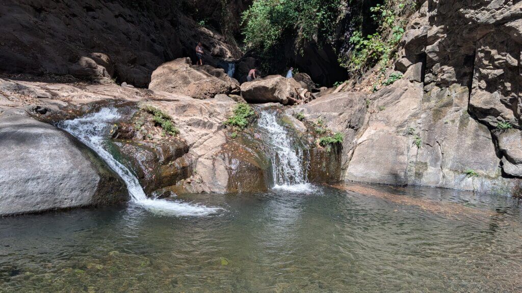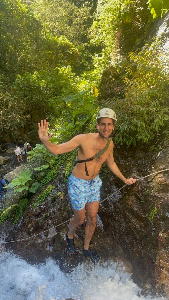 Once we finished the Seite Cascadas, we walked another 20 minutes to the Chorro de Caleras, 3 waterfalls where you could swim in the pools that they create. Sam had a fun time jumping from one of the cliffs and it was cool to see all different people together. Finally, after 3 hours, it was time to complete the trail and head back to the pickup truck. However, we reached an obstacle when the fence was covered in barbed wire and we couldn’t get through. Luckily (?) our guide’s friend had a wire cutter and we clipped through the fence to pass. Once we reached the end, there was another barbed wire fence. This time we just went around it, but it was very dangerous and steep and terrifying as we held on to trees to make it though. Thank you Hashem, we survived the hike in one piece and made it back to the hotel safely.