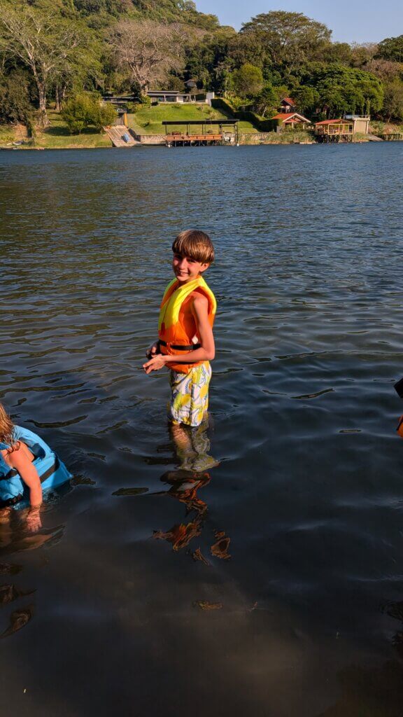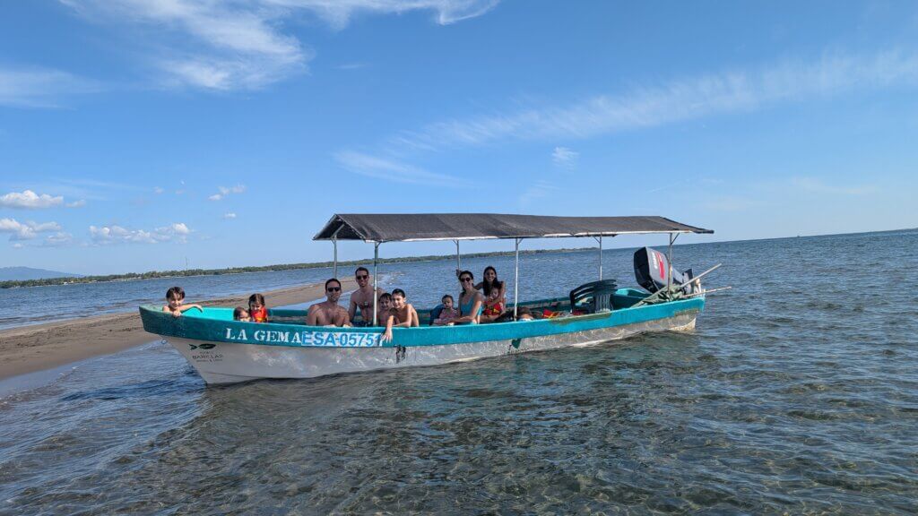 We took a lancha to Jiquilisco Bay. It was picturesque and gorgeous to see the water surrounded by some of El Salvador’s volcanos. We passed a few small towns until we stopped at a sandbar. We all got off the boat and had a great time splashing in the 0-3 feet high bay water. The kids found sand dollars and the grown ups enjoying “lounging’ on the sand. We ended our stay at the resort with a quick swim at the hotel pool before making the 3 hour drive home.