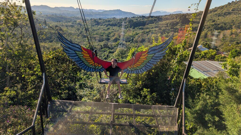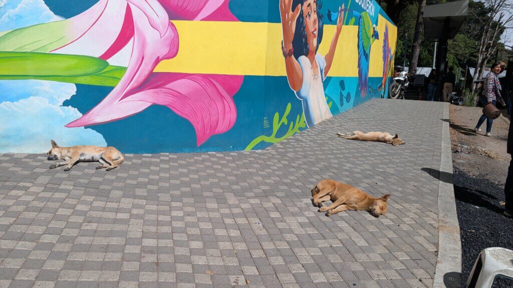 We headed towards Ruta de Flores, a scenic road connecting several colonial towns. We started in Concepcion de Ataco, where we did some local shopping and ate lunch. We then took a cool trolley tour hooked up to a van to see a stunning viewpoint. It was a cute way to explore the town and see the murals, stray dogs and locals.