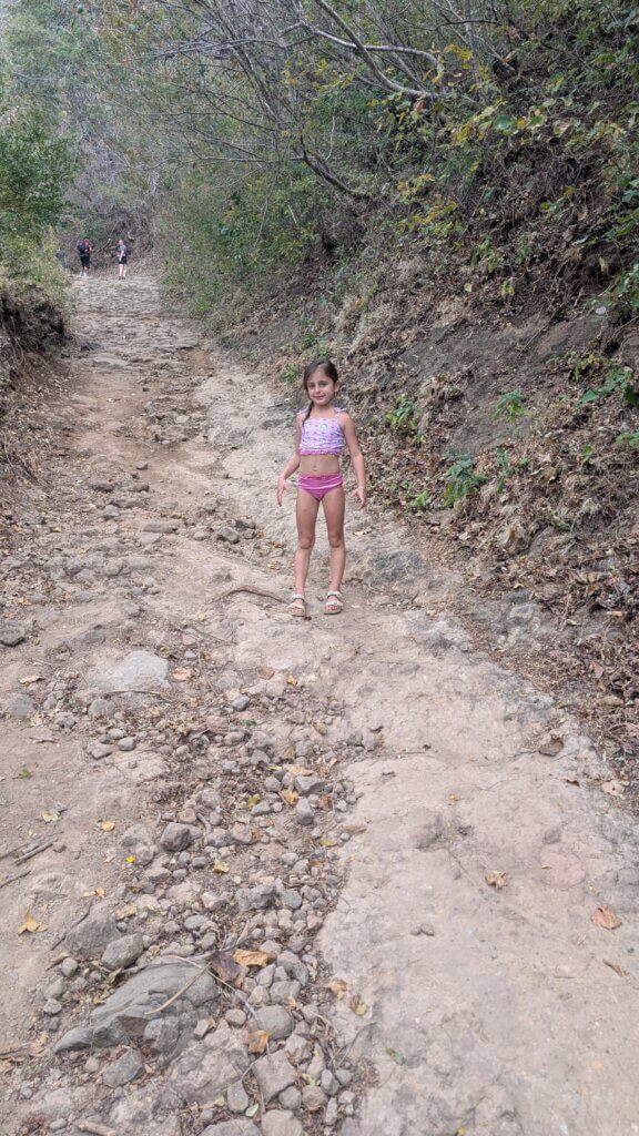 The (planned) final major attraction was Tamanique Waterfalls, which is about 25 minutes from El Tunco. We hired a guide through Tunco Life to take us to the waterfall and lead us through the hike. We also hired an official guide for additional help with the kids and bags. It was about a 3 mile hike round trip. We started off on a very rocky road, which then turned into a steep sandy path. The end of the hike required us to climb down several sets of extremely steep steps. Luckily the guides were able to help us, but it still required a lot of coordination and effort. Once we got to the bottom we were able to swim in the waterfall pool, slide down a rock and do a cliff jump. After swimming for thirty minutes, we began the climb back up. Thankfully we all made it back safely and we headed to the pool to relax before Shabbat.