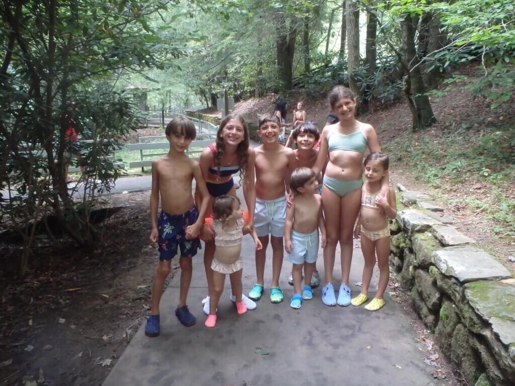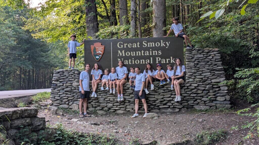 We have tried to take advantage of small breaks to visit new places with the kids. After looking at many flights, we settled on Charlotte, NC, which was a quick flight from Newark and within driving distance (4 hours) of Great Smoky Mountains National Park. For this trip, our guest stars were the Halabis, adding another 2 adults and 5 kids to our group.