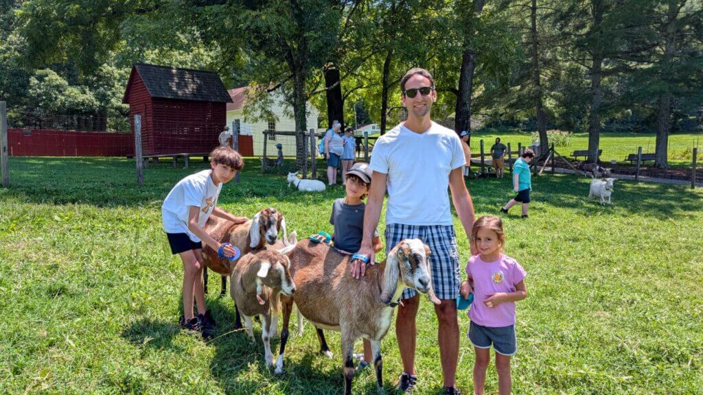 The first stop (about 2 hours away) was Carl Sandburg’s historic home. I have never heard of him, but he is a famous poet and his home became an NPS site. The only thing that really attracted us to the site were the goats. Carl Sandburg’s wife and their family raised some of the most productive goat herds in the country. After a short walk (about 15 minutes) from the parking lot, you reach the goat farm. Visitors can pet the goats and brush their hair. The kids enjoyed this and of course got their first Junior Ranger badge of the trip!