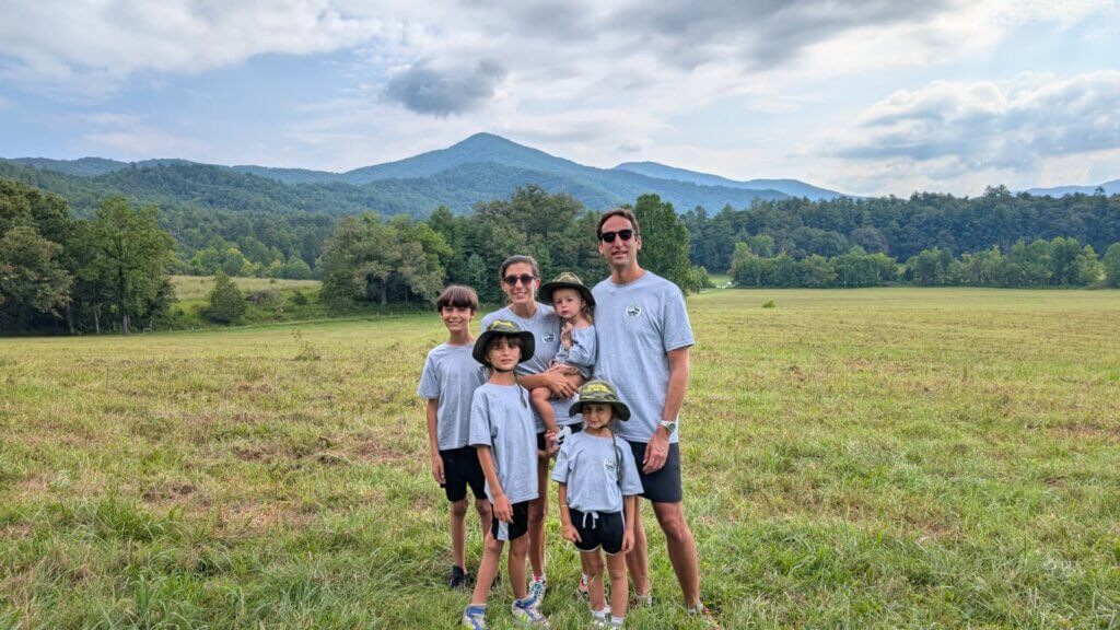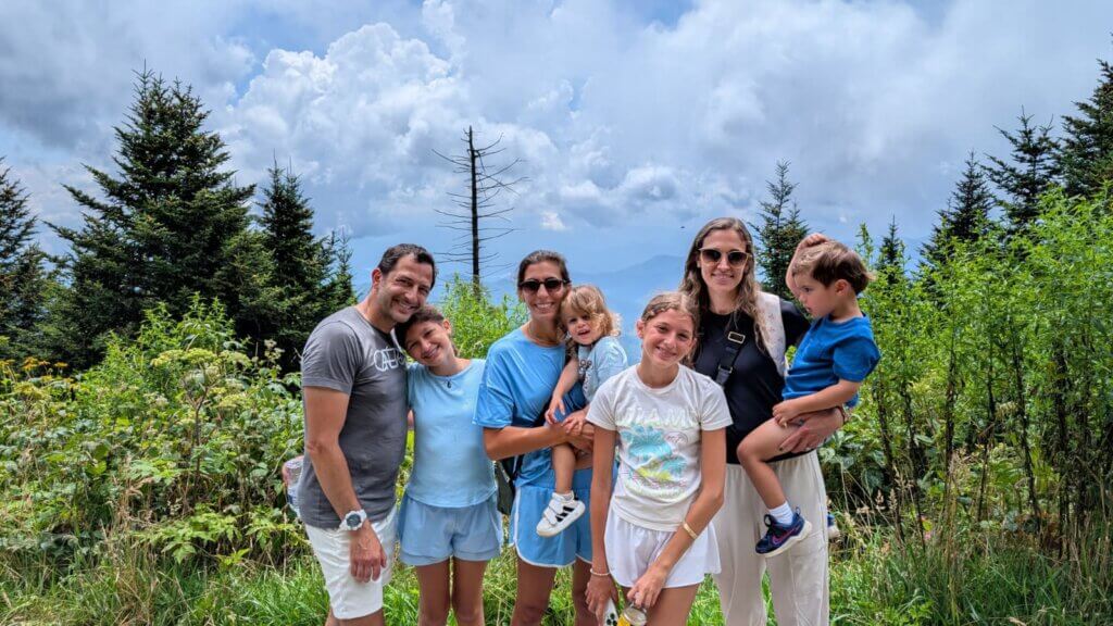 About one week before our trip, a storm in TN washed out the Newfound Gap Road, making it inaccessible while we were there. This frustrated our travel plans and in order to get to the other side of the park, we had to take a 2 hour detour through the I-40 and adding several hours of driving to the day. This meant that we didn’t end up arriving to Kuwohi (FKA Clingman’s Dome) until after 1 PM. We walked the short 0.5 miles to the highest viewpoint, but the steepness made it a difficult climb! Even worse, the view was cloudy and we couldn’t see much. The kids did earn their junior ranger badges here though. It was Allen and Joseph’s 18th NP, Shelly’s 15th and Sharon’s 5th!