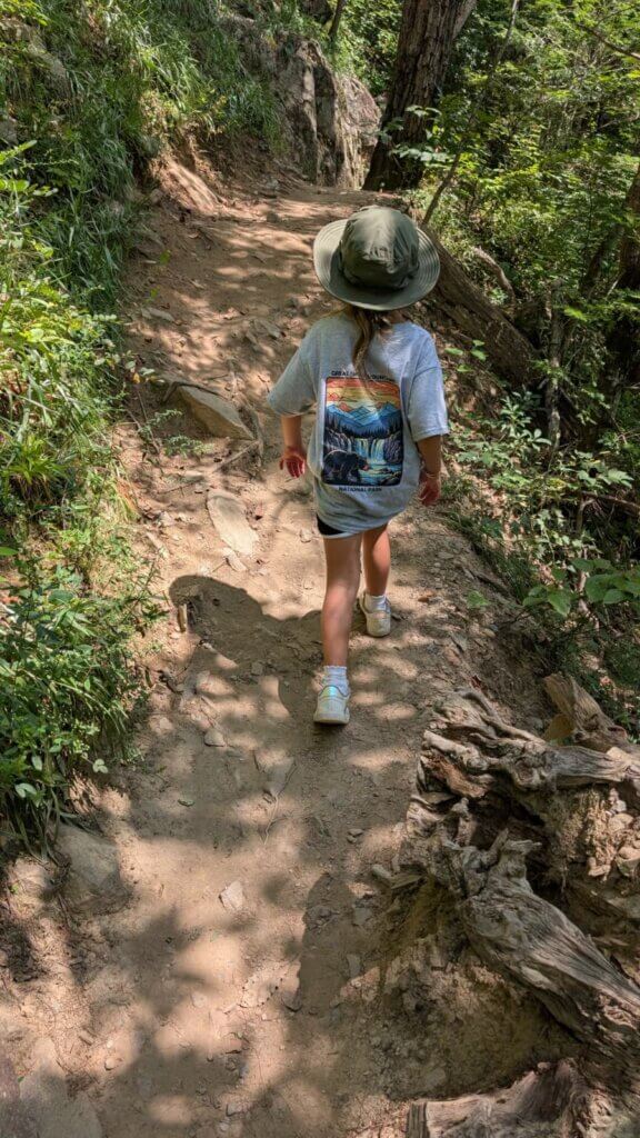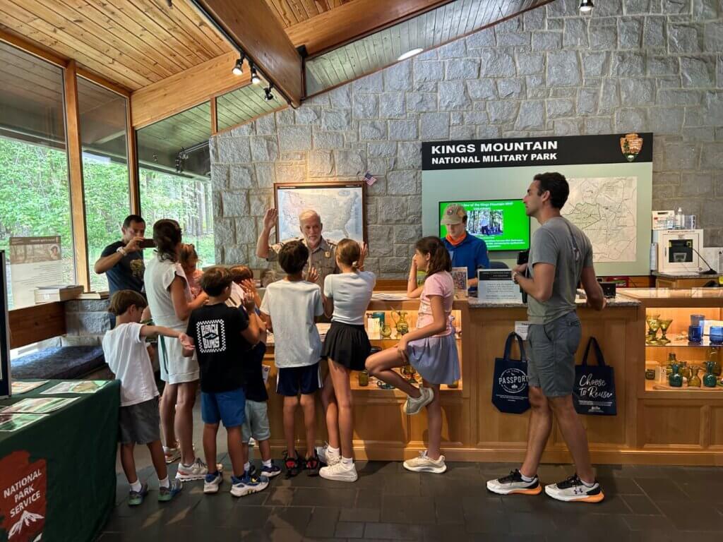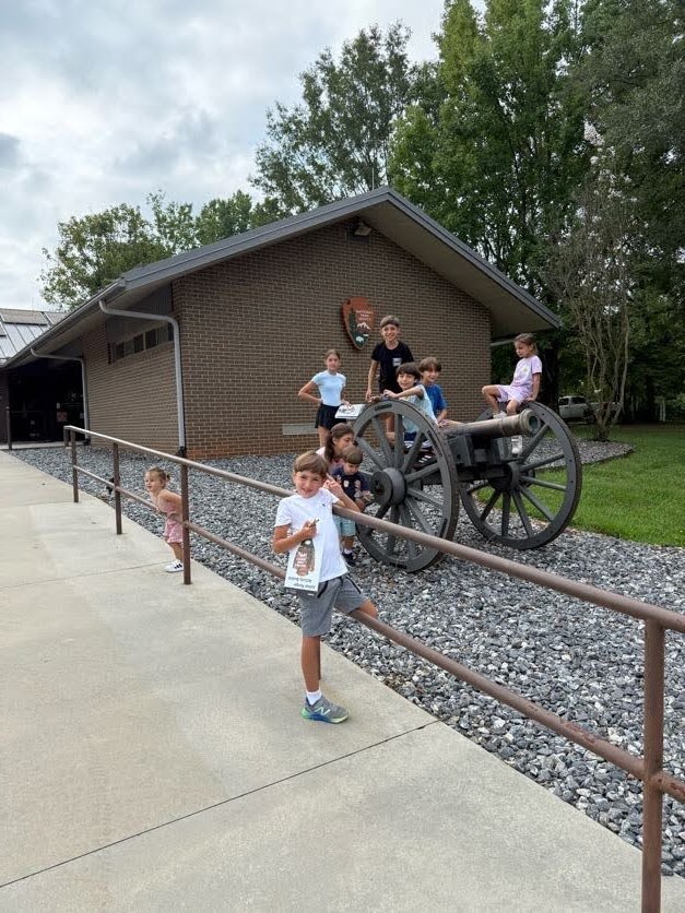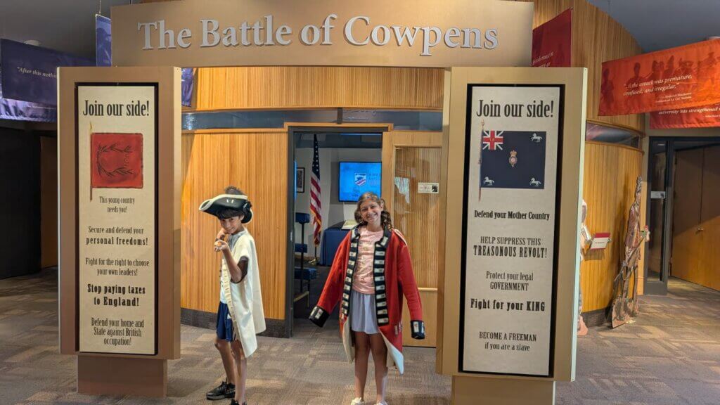 As a history teacher, it’s always interesting for me to visit historic sites around the country, especially related to events that I teach. On this trip, we passed through 2 battlefields from the American Revolution. When the British realized that they were being defeated, they devised a new strategy – to attack the Patriots in the Southern colonies. The hope was that the Loyalists would intervene (as there were more Loyalists in the South) and help the British defeat the Patriots. Luckily for America, this strategy was unsuccessful and ultimately the British surrendered at the Battle of Yorktown in 1781. Our first stop was Cowpens Battlefield, site of an American Revolution battle in South Carolina.We spent most of the time at the indoor exhibit and museum, as the battlefield was mostly empty grounds. The kids worked really hard to earn their next Junior Ranger badge. Next, we drove about 40 minutes to Kings Mountain National Military Park, which commemorates the battle of the American Revolution fought on October 7, 1780. After exploring the exhibit, we did a short walk around the battlefield. We stopped at Patrick Ferguson’s grave – he was the only British commander to be buried in a battlefield and threw stones around his grave to give him good vibes. We then walked a little further to the memorial. Luckily we worked very hard to complete the Junior Ranger book, as the ranger was meticulous and insisted that each page be done completely. Here the kids earned their last badges of the trip. (Did you know that forest fires are actually good for trees?!)