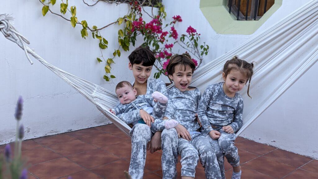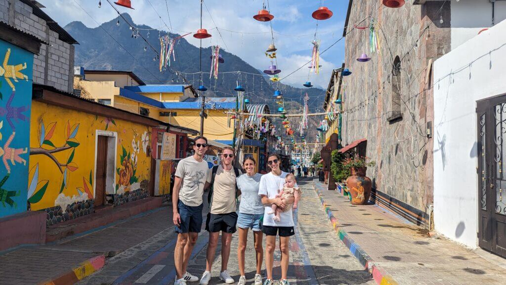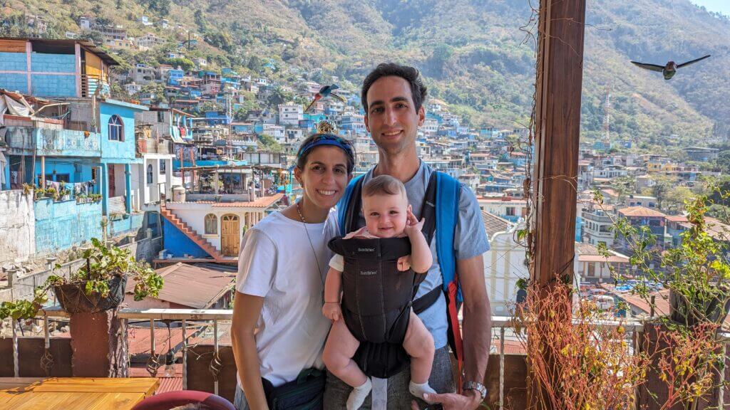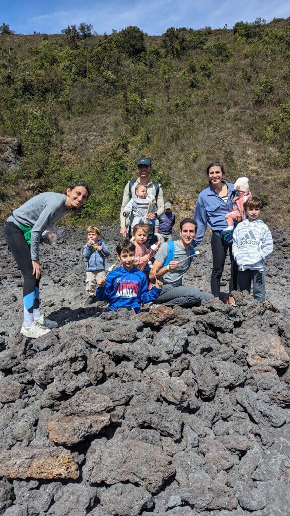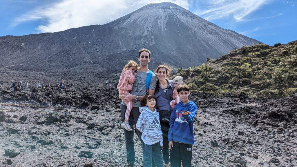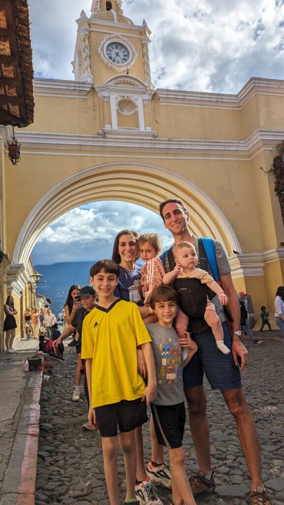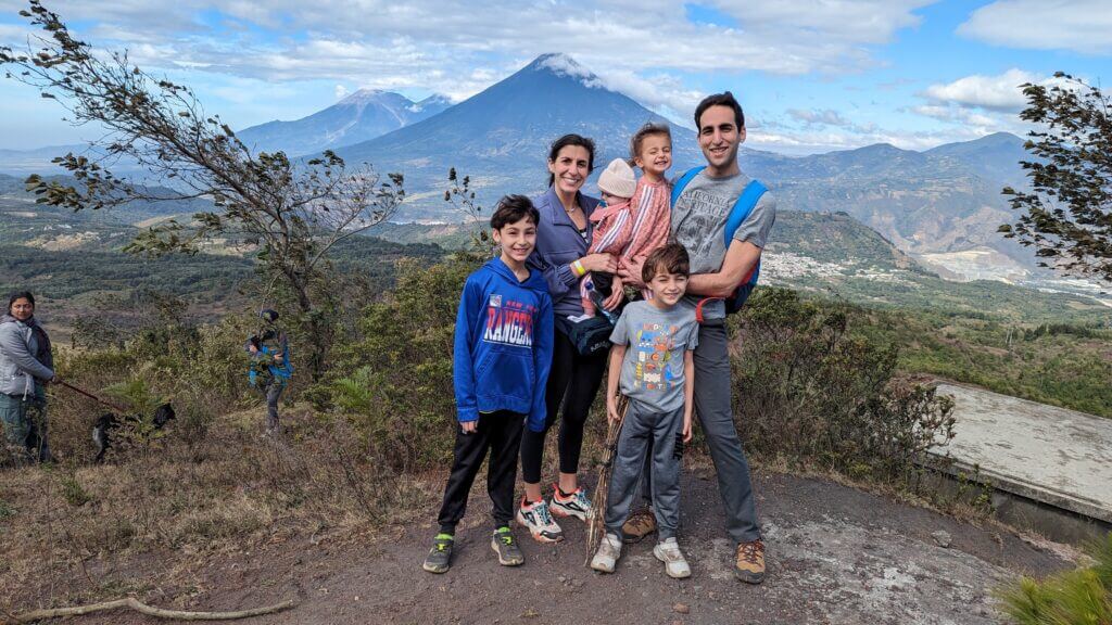 Winter Break 2024 – where should we go? When we first started thinking about it in the summer, we knew that we would have a 7 month old with us. Rita didn’t think a beach / resort vacation would be the most enjoyable, and was more interested in Europe since it would be easy to move around with Sharon in the stroller. Then, October 7th happened and Europe was a no-go. Also, Rita started to think that we would appreciate somewhere with a warmer climate. For a few weeks she considered Panama. However, it seemed that to do it correctly, we would have to fly across the country, which would be difficult with 4 young children. After a Google Explore search, we found cheap tickets to Guatemala. Rita is a fan of the Facebook group Jewish Girls Travel Forum and remembered that they had great reviews of Guatemala and Instagram stories from Busy in Brooklyn and others. We introduced the idea to Viviane and Zeke and they were interested – especially Zeke who saw it as an opportunity to relive his backpacking days. Once Rita got over her fear of encountering plenty of stray dogs, we booked the trip and began to plan. We decided to stay in Antigua first and then head to Lake Atitlan for a few days. Sam decided that we should stay in Pana because it offered the most direct route by car from Antigua and to the airport in Guatemala City. The trip was a lot of fun with many thrilling activities for everyone in our group. In one word, it was certainly a chavaya!