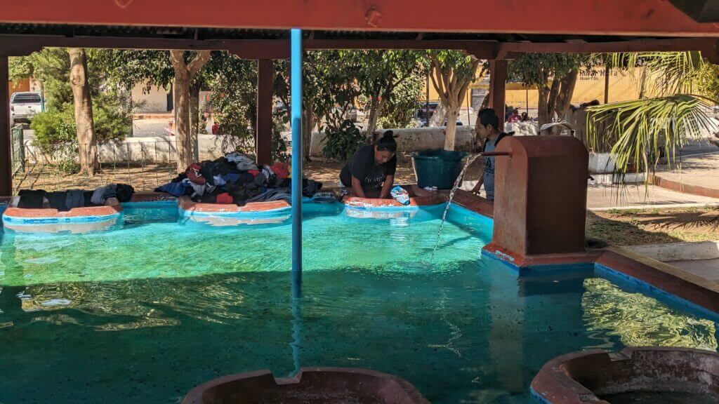 Santa Catarina Polopó – The next stop had pretty blue houses and buildings. We went to yet another women’s weaving cooperative. By this point, we were pretty exhausted of them. We ended this visit with a trip to the thermal springs, naturally hot pools. The trip down to the water was pretty rocky and difficult to maneuver, but we enjoyed the water once we were inside. The water was extremely hot coming out of the rocks along the shore of the lake.