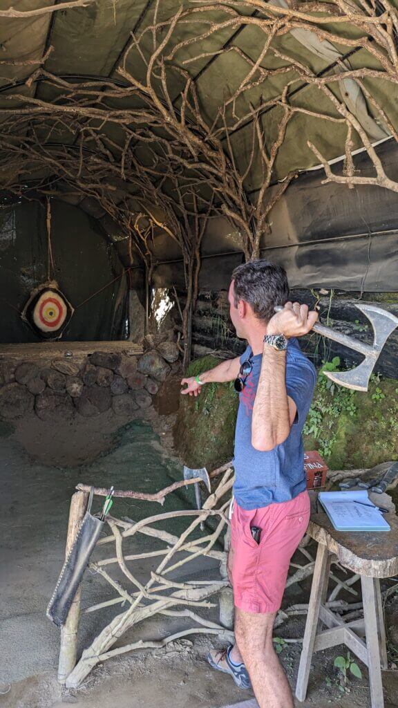 Hobbitenango – We then continued up a steep, bumpy road to Hobbitenango, a hobbit inspired park. There were several buildings modeled after the book. We took some beautiful pictures, including the famous hand in the sky. We tried axe throwing, bow and arrow and knife throwing. It was a really cool place and we could have spent even more time here, but Alejandro was rushing us to the next place.