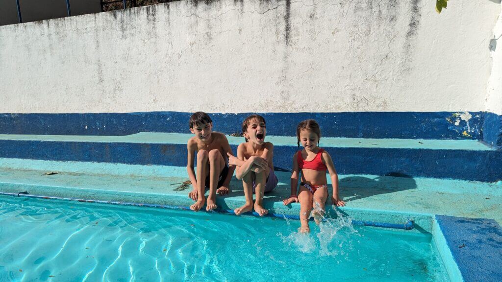 Finca el Pilar – Once back in Antigua, we had to switch out of the pickup truck and into our regular car. We headed to El Pilar, which is supposed to be a huge ecological park with swimming pools. For some reason, we only saw the pools, but all the kids and Sam and Zeke enjoyed the chance to cool off in the cold waters. The kids spent some time at the metal playground before we headed back to the hotel.