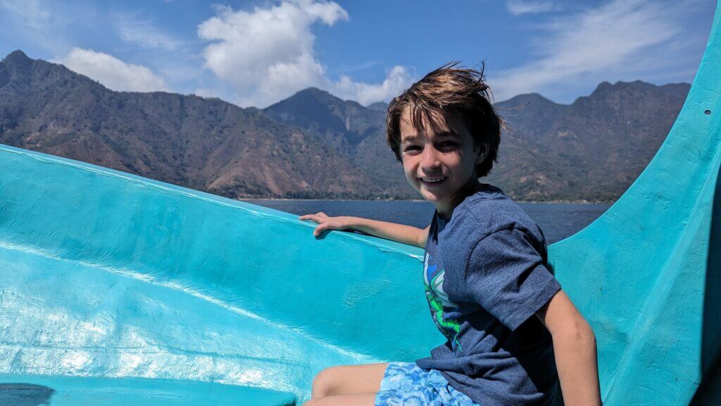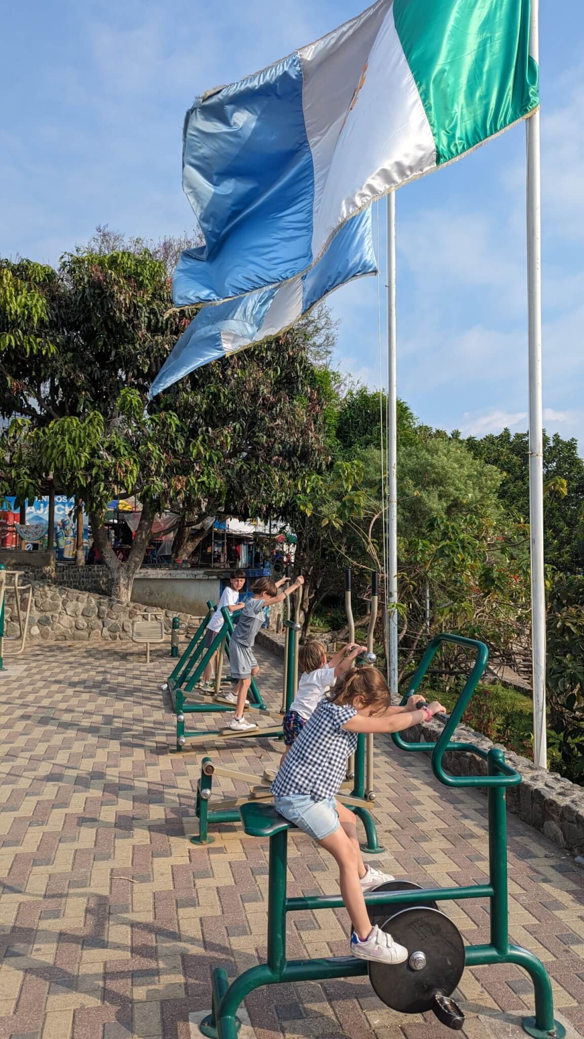 Panajachel and Paragliding – After Iximche we continued on a twisty, curvy road and reached Pana about 2 hours later. Our hotel felt like a real resort compared to the surrounding area. We spent some time relaxing and swimming by the pool. Sam insisted on going paragliding and left us alone to enjoy his adventure. Paragliding was very cool and quite complex as the pilot has to study the wind to find areas to get lift. The experience was thrilling and although visibility was low, the conditions allowed for great flying. Sam chose to go with RealWorld Paragliding as they had the reputation as safest and most experienced. He spent an hour in the air and even got to do some freestyle along the way. Once we finished the pool, we spent some time walking around the streets of Pana, visiting some marketplaces and getting a feel for the area. The kids enjoyed a few minutes as a local “playground” near the dock.