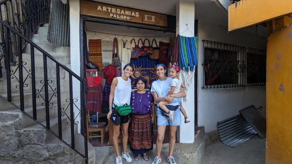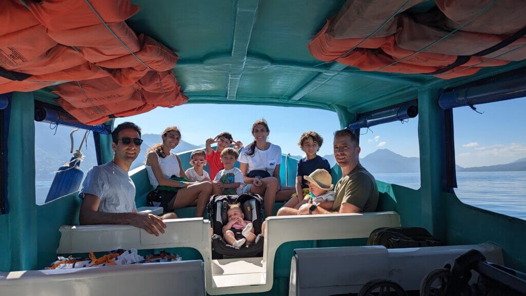 We were told that a trip to Guatemala would be incomplete without visiting Lake Atitlan and it’s definitely true! We arranged a tour with Alex, whose information I found on the Jewish Girls Travel Forum Facebook group. (Shoutout to them- their advice was super helpful in planning this entire trip!!) Last minute, Alex switched the plans and had one of his guides, Gespard, work with us for the day. Traveling with so many people, especially so many kids, we felt it was important to spend a little more for better peace of mind during the day. For $250, we hired a private boat that stayed with us for the entire day and transported us from village to village. It also included the tour guide services. We also hired a babysitter to help us as an extra set of hands with all of the kids. If you are traveling with a family, I definitely recommend this!!