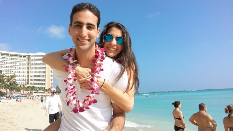 For winter break, we planned a trip to Hawaii. Allen’s nurse was still with us, so we had the opportunity to take one last trip alone! Sam had to work in San Francisco, so he flew to Hawaii straight from there and Rita flew alone direct from Newark. We stayed in Waikiki Beach, which was the most touristy place to stay on the island, but it was a nice area and we were planning on exploring from there. Rita landed first so she ubered to the hotel, unpacked and bought us supplies (some snacks, beach mats, towels, etc.) from the supermarket for the trip. Sam arrived later that night, picked up the car – he was able to get an upgrade to a Jeep Wrangler, which made it awesome to drive around the island with the top/sides off!