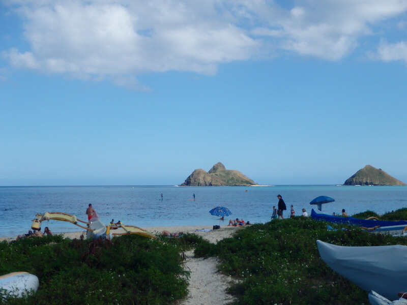 After Diamond Head, we drove over to the Lanikai area of the Island on the Windward (East) side of the island. We stopped by Nu’unu Pali Lookout which was at the peak of the mountain pass to get to that side. We spent most of the day on Lanikai beach, in the wealthy area of the island (Obama has a mansion nearby). The beach was nice, except Rita got upset when there were unleashed dogs around. We also did some shopping in the area.