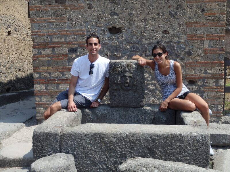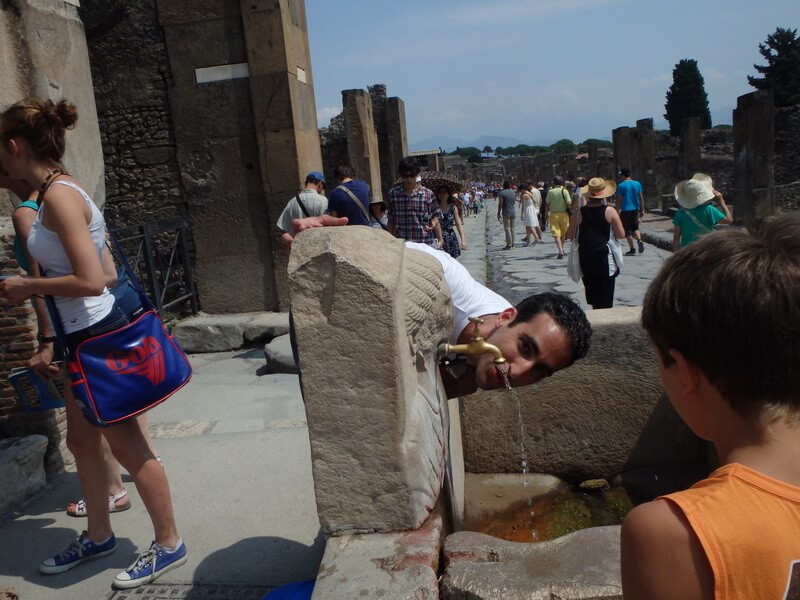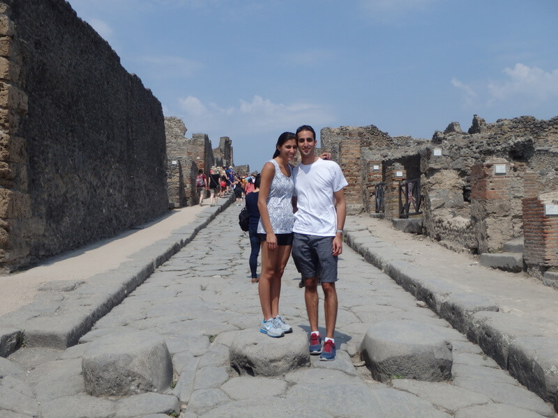 After leaving the hotel at 8:30, we travelled to Pompeii where we met our tour guide Lena. We explored the ruins, seeing the enormous marble villas, theatres, huge main street, including crossroads and chariot marks in the stones. We also saw fast food stalls with terra cotta pots used to keep food warm, public bathhouses, and the brothel. Temples with altars to the Roman gods, and public waterfountains.