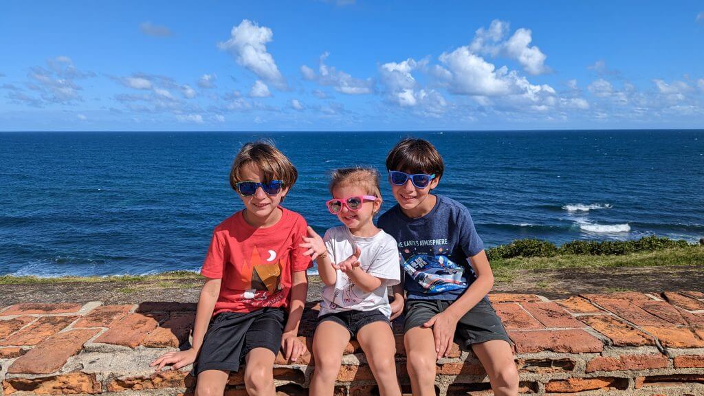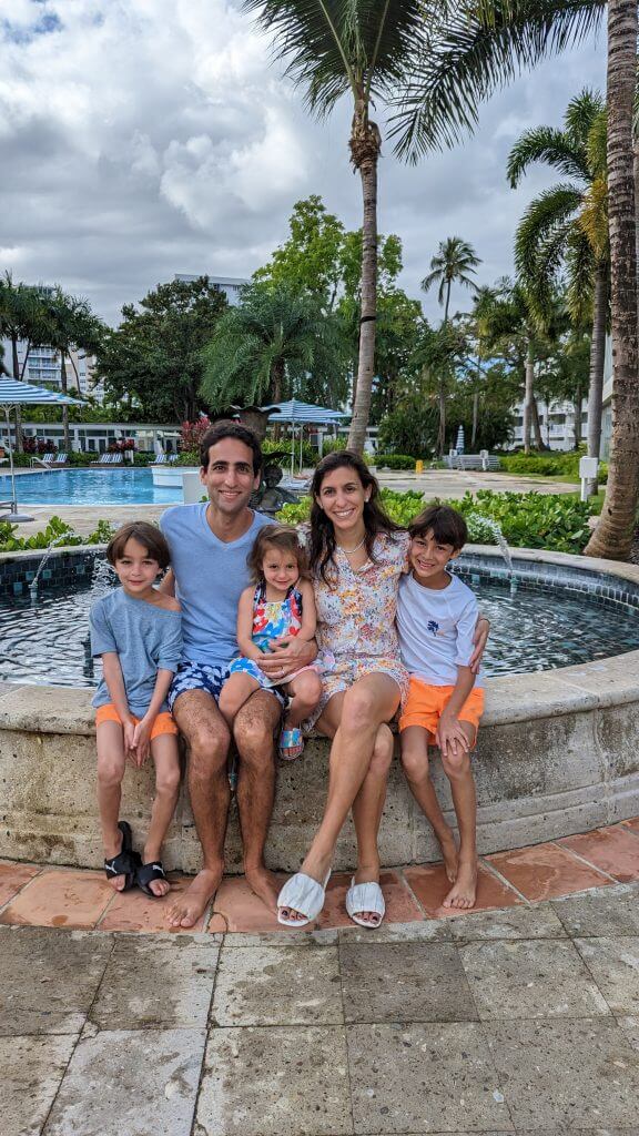 We stayed in the Fairmont El San Juan Hotel. It was a beautiful resort with 2 pools and beach access. Free activities included hair braiding, face paint, and an ices cart. This was the first trip where I brought cooked food with us for every meal. I numbered each bag depending on which day I needed it and kept a list for myself of what food was in each bag. The hotel is very familiar with kosher food and stored all of our food for a small fee. Each day, I told them which bag of food to bring up. I let it defrost and then heated it on the hot plate that I brought with us. (They would also have heated the food for a fee.) There were several spots around the resort where we could sit to eat. The hotel is located near the Chabad House, which was very convenient for Shabbat and other daily prayers.