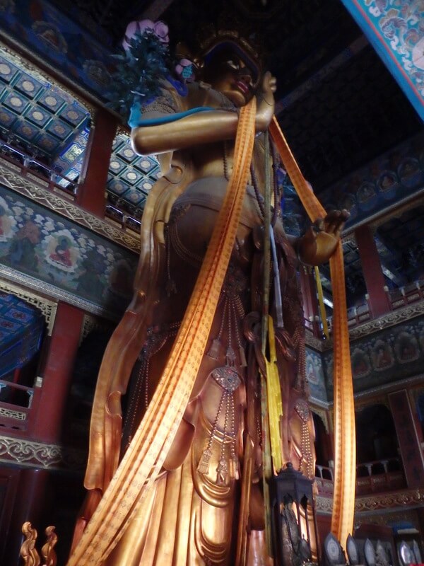 Lama Temple – Temples were built in the 1700s under the Qing Dynasty. Lama = monk. Buddhism spread to China from India. We saw people there lighting incense offerings, lighting sticks and bowing in prayer. One temple had the largest Buddha in the world.