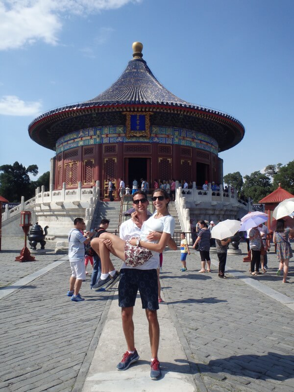 Temple of Heaven – Every summer and winter solstice, the emperor would come here to pray to the god of heaven. Important places in China had animals on the roof, with 9 animals being the most important. The color of the roof also symbolized the type of building it was. Hence the Temple of Heaven had a blue roof for god. We crashed photos of a Chinese couple getting married here 🙂