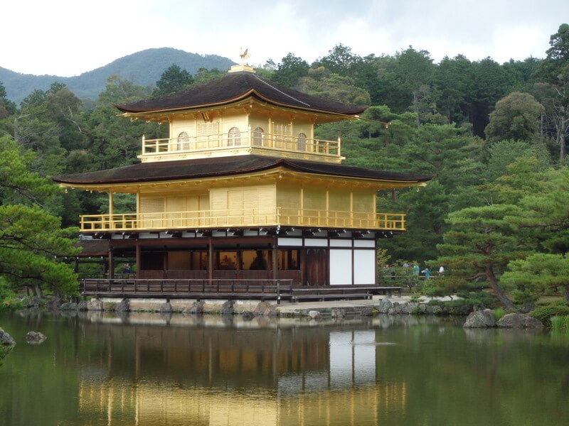 Ginkakuji – Golden Pavillion – building covered in gold. It was in the middle of a lake and really nice.