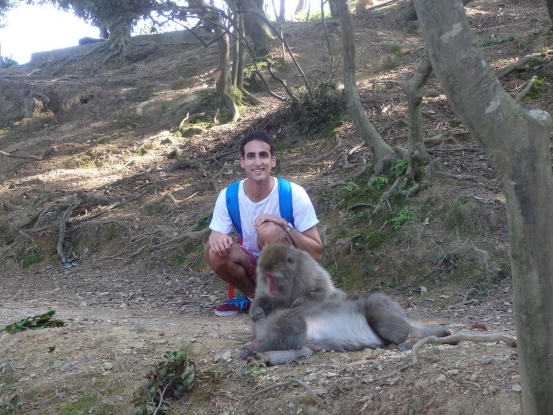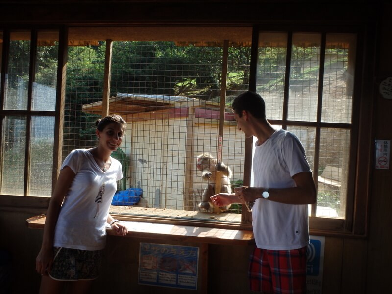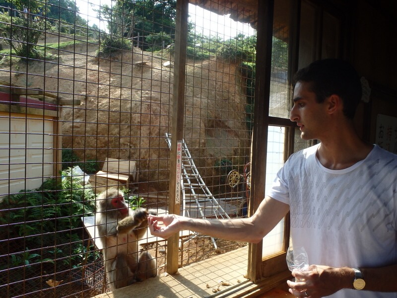 Iwatayama Monkey Park – After a 20 minute hike up the mountain with amazing views of Kyoto, we reached the monkey sanctuary. Macaque monkeys roamed the mountaintop – we were warned not to look them in the eye! At the top, we went into a building where we bought food to feed the monkeys through the windows – while we were in the cage and they were outside. It was really cool to interact with these animals.