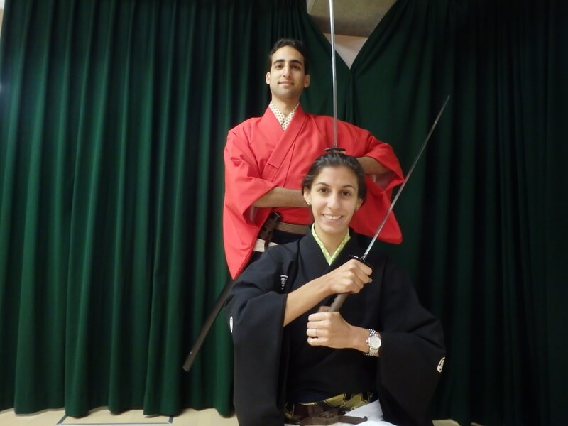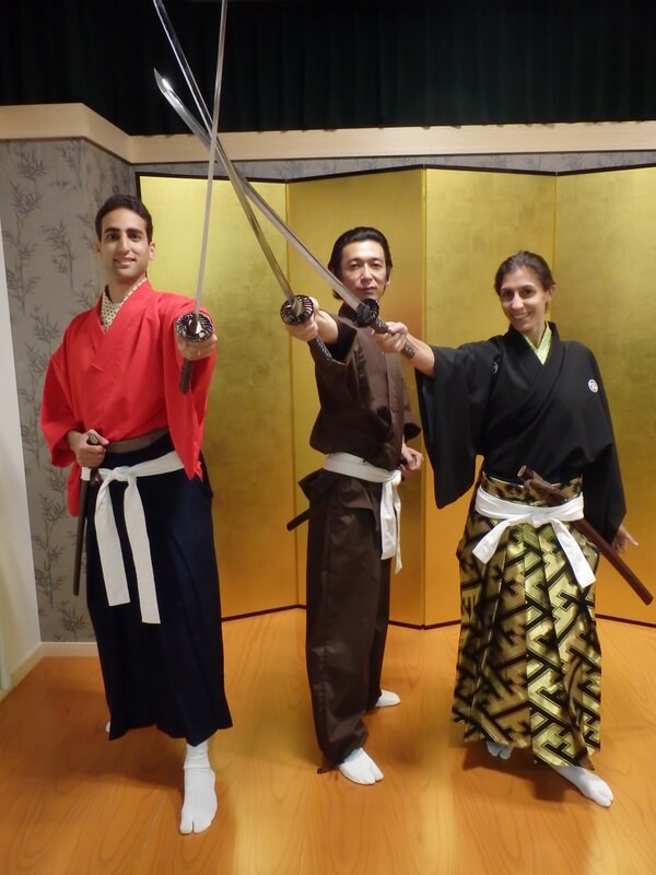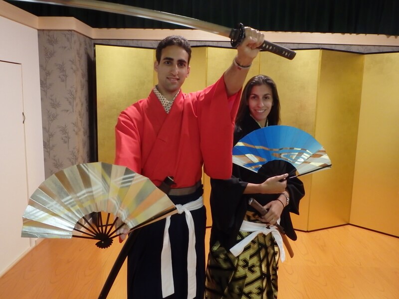 Samurai Kembu – We spent the morning learning about the Samurai, and did a sword routine. We learned the proper way to hold a sword and draw it, side cut, twirl and thrust. Samurai weren’t ninjas, they were a social class in Edo Japan also called Bushi. They follow the Bushido code, chivalry. Fans were also part of the culture as a sign of respect.