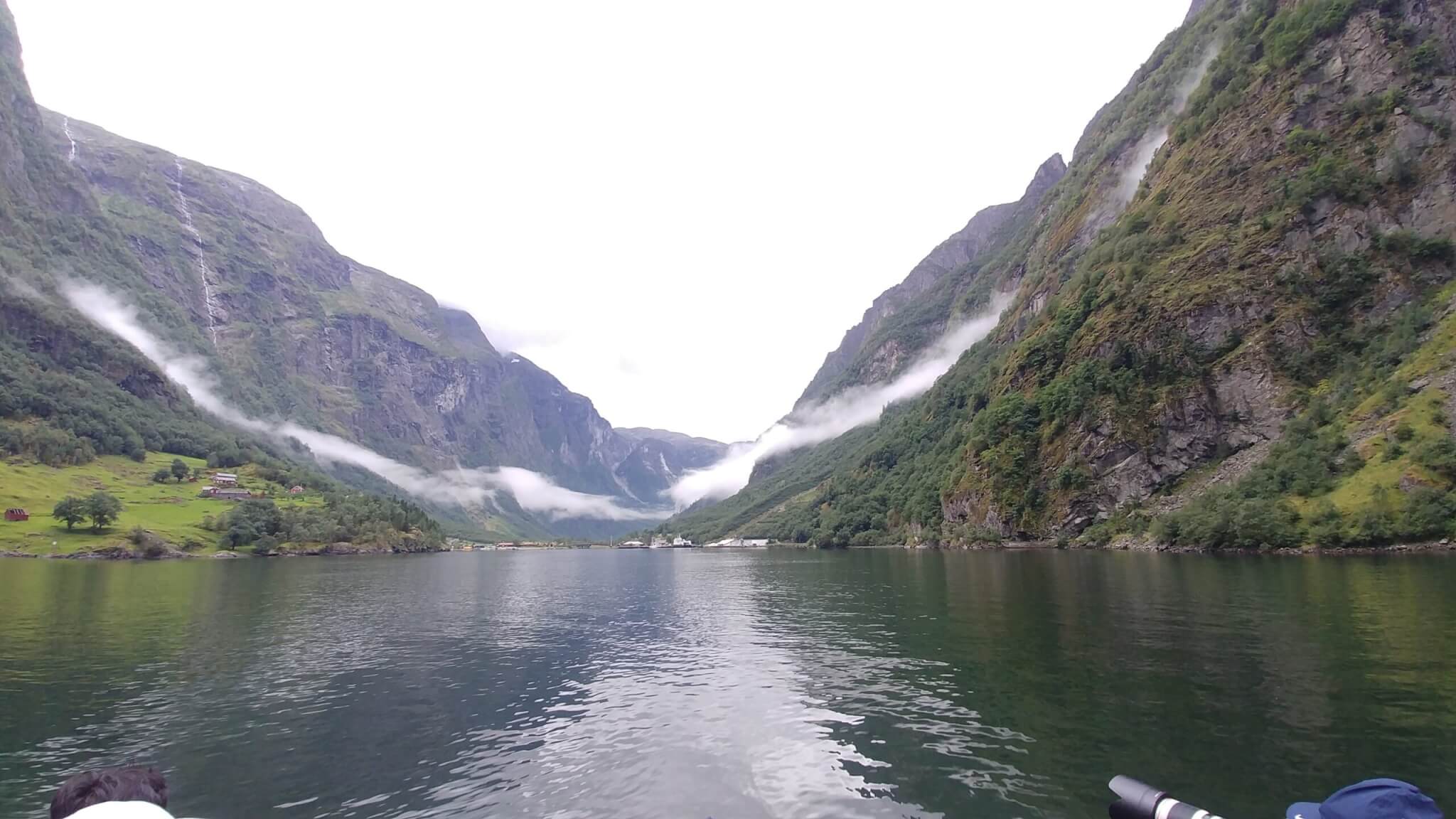 Fjord cruise – The cruise took us on the magnificent Aurlandsfjord and on the narrow Nærøyfjord. It was a bit misty and chilly on the decks, but the fjords were spectacular. The tall cliffs were imposing, and there were waterfalls scattered along the mountainsides. The clouds along the fjords gave it all a mystical feel. After the cruise, we continued our journey to Bergen