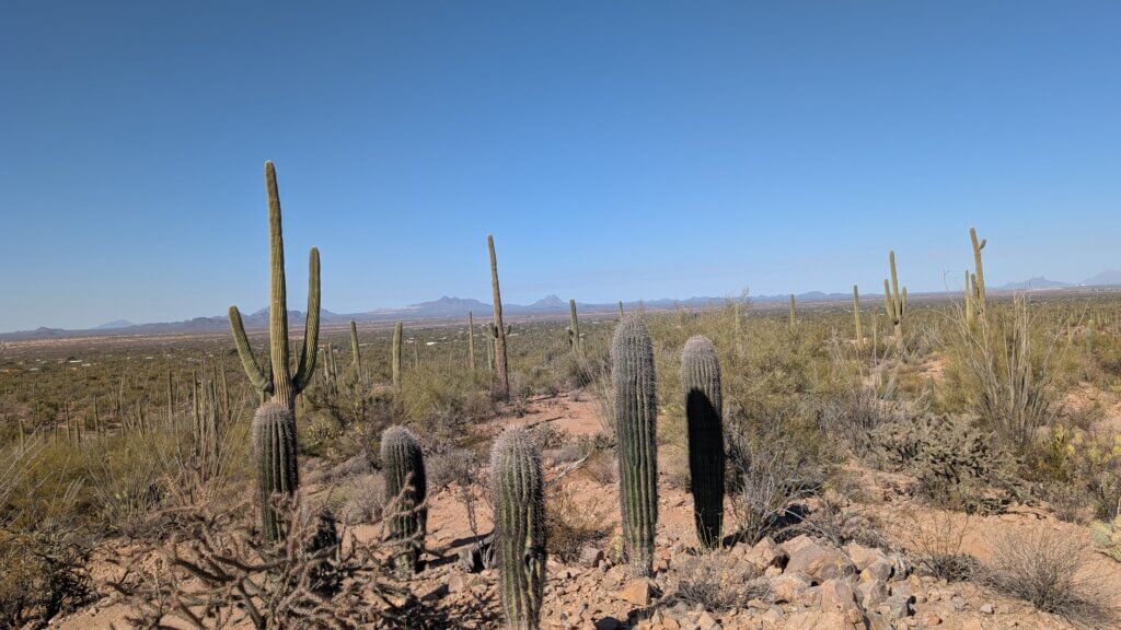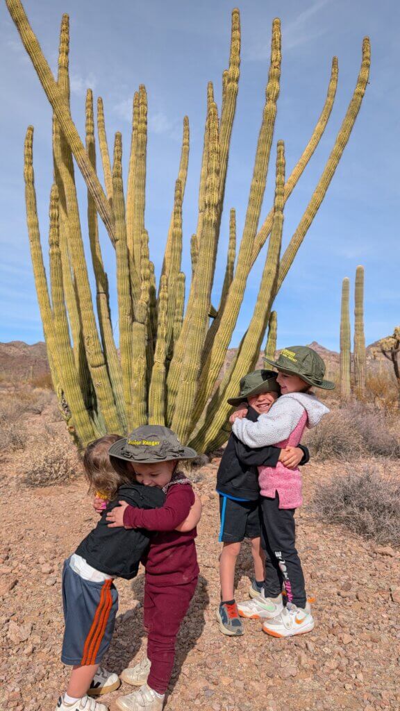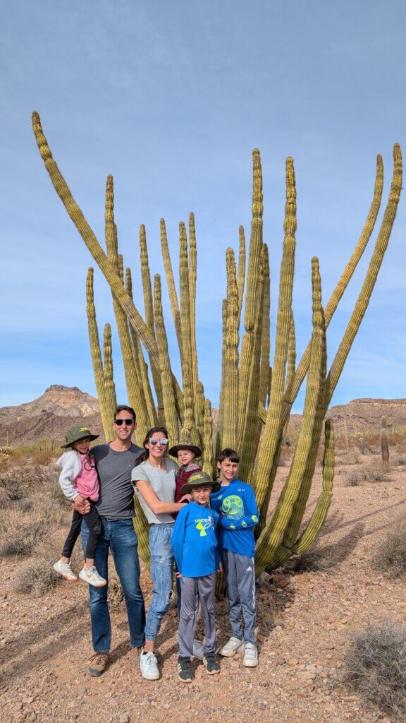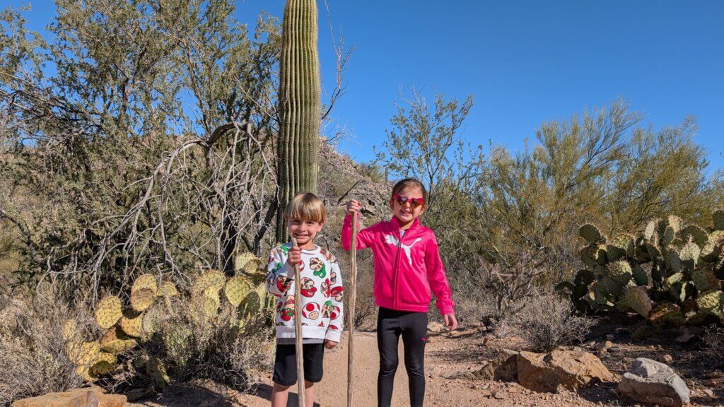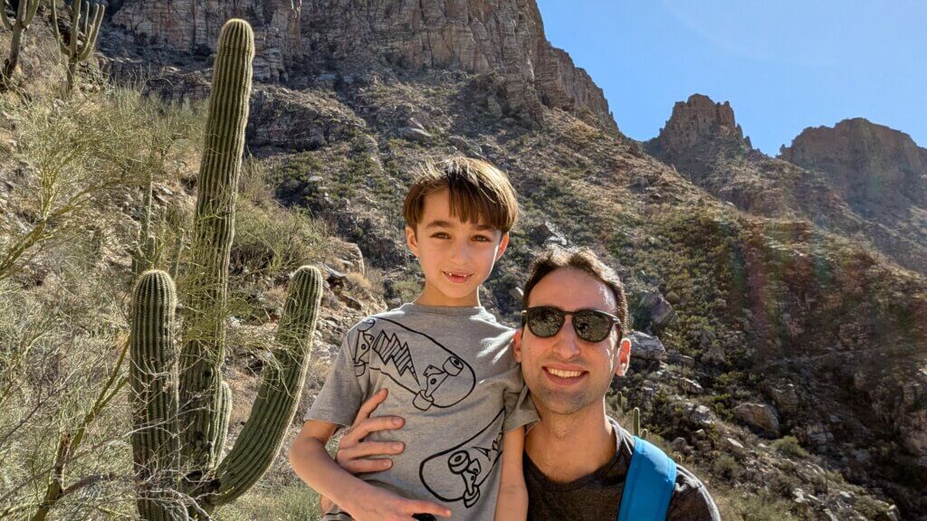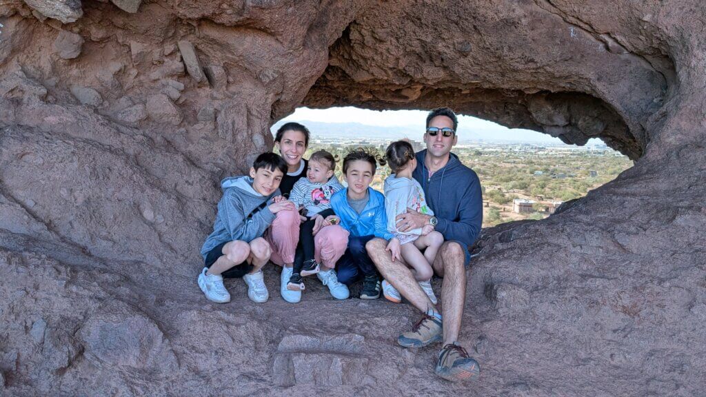 After a late landing in Phoenix, we stayed at the nearby airport hotel for the night. In the morning, we drove about 2 hours to Sabino Canyon. When we visited in 2022, we tried to come here, but the shuttles were fully booked, so we made sure to book it in advance for this trip. We took the Sabino Canyon shuttle, which is about a 30 minute journey to the top. Once we reached the destination, we chose to get off and hike for about a mile. We saw beautiful desert scenery of saguaro, prickly pear, and cholla cacti. Sharon was our newest hiking champion, crying whenever she wasn’t allowed to walk herself. Allen and Joseph enjoyed running ahead and Shelly and Steven had a blast hiking together. Joanne was thrilled to be carried in her mom’s arms. After the hike, we took the (very crowded) shuttle back down. On the way down, the shuttle makes 8 stops where it drops off or picks up passengers. We ended our visit with the short Bajada Loop Nature trail, where we saw a rare crested saguaro. This park was very nice, but would have been spectacular had there been any water in the streams/pools. Fun fact: saguaros don’t grow arms until they are about 75 years old!