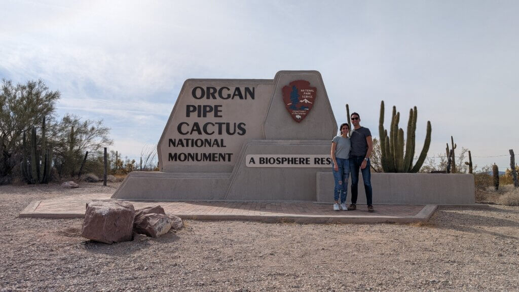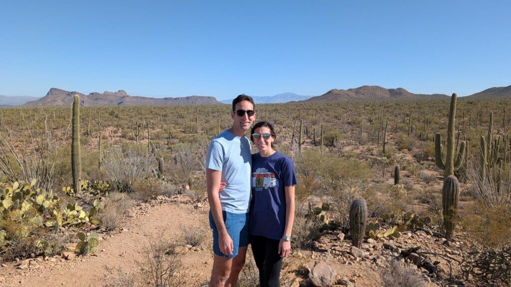 The next activity – Organ Pipe National Monument – required a lot of driving and was really out of the way. We had to rush through the park because we had dinner reservations in Scottsdale. If we had more time, we would have gotten more out of the park. Organ Pipe NM is enormous!!! The Ajo scenic drive is a 1 way 17 mile loop and takes about an hour to complete!! Along the drive we stopped at Arch Canyon Trail, but we only walked for a bit before turning around. At the start of the trail is a natural arch formation. As you continue it to the 1.2 mile there and back trail, the arch disappears behind you. The landscape was very beautiful and as Sam noted, “it’s the greenest desert,” with tons of different types of cacti. The organ pipe cactus is wider and shorter than the saguaro with many arms. We enjoyed the park, but the drive was really very long and the park was too remote for us to enjoy it properly.