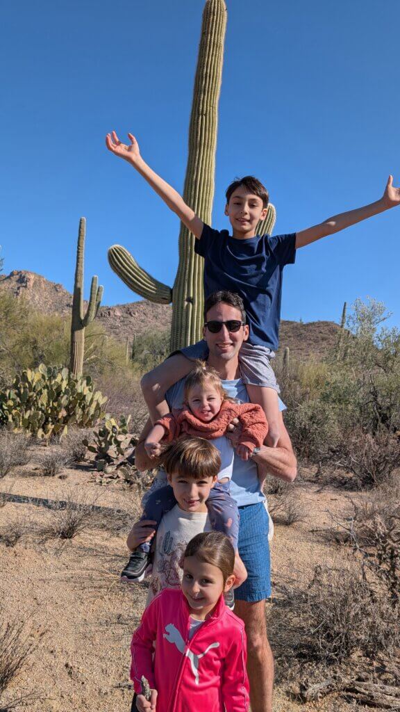 Introduction: We were once again looking for a trip that we could do with a toddler and other big kids. We didn’t want to do a resort vacation because I was nervous about chasing after Sharon near a beach/pool. We considered El Salvador, but ultimately decided it would be difficult with too many babies (the Dweks joined us again!) and not enough infrastructure. We also thought about LA (luckily we didn’t choose that because of the wildfires) and other US states. Ultimately, we decided to revisit Arizona and also go to the southern border of the US and Mexico. There were a few national parks that we wanted to visit that were very far from Arizona, but doable. The Dweks came, but stayed in Tucson while we ventured to New Mexico and Texas.