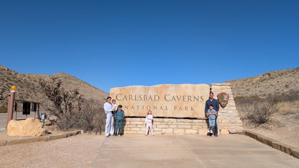 After a very very late night, we headed out the door relatively early to drive another 2.5 hours to Carlsbad Caverns. It sounds insane, but the cave was actually really cool and a great activity for us. When we got there, the kids were immediately attracted to a ranger who recruited them to participate in an MLK service project to help clean the area. They got their cleaning gear (safety vests, sticks and pails) and walked around the lot with a ranger to clean up any trash. As a reward, they got awesome Carlsbad Caverns neck gators which were perfect for the weather.