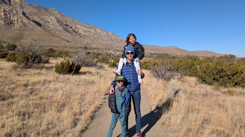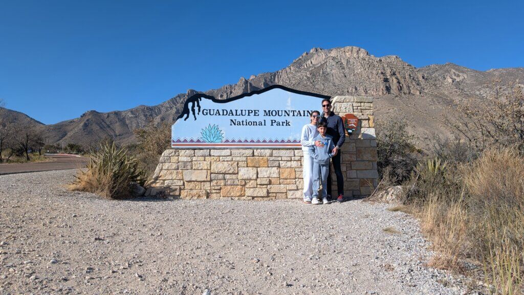 After a great visit at Carlsbad Caverns, we drove about 40 minutes back to Guadalupe Mountains National Park in Texas. This was a pretty boring NP for us since we weren’t doing any major hikes. It was also freezing!! After a quick stop at the visitor center, we decided to only do the Manzanita Spring trail – a short 0.5 mile there and back walk with beautiful views of the Guadalupe Mountains in the background. We did a short stop at the Frijole culture center and enjoyed the short walk. (We considered doing the .75 mile Pinery Trail right near the visitor center too, but the kids were getting tired and we still had to drive back to El Paso.)
