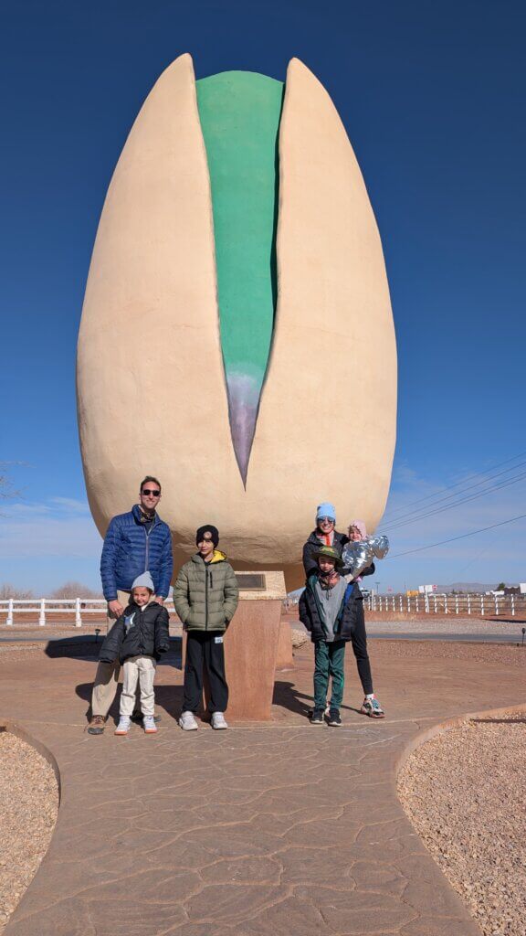 After leaving El Paso, our first stop was Pistachioland in Alamogordo, about 1.5 hours away. There, we saw the largest pistachio (statue) and learned the history of the pistachio in America. The pistachio is native to Iran and other Middle Eastern countries. However, after the Iranian hostage crisis and ensuing embargo, America stopped importing goods from Iran. Farmers attempted to grow pistachios here, but encountered several problems along the way. Eventually scientists chemically engineered pistachio trees to successfully grow in America. Today the plantations has thousands of mature pistachio trees, which produce tons of pistachios each year. After the short (20 minute) tour, we tasted some of the flavored pistachios and even had pistachio ice cream!