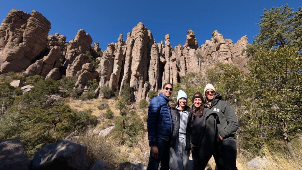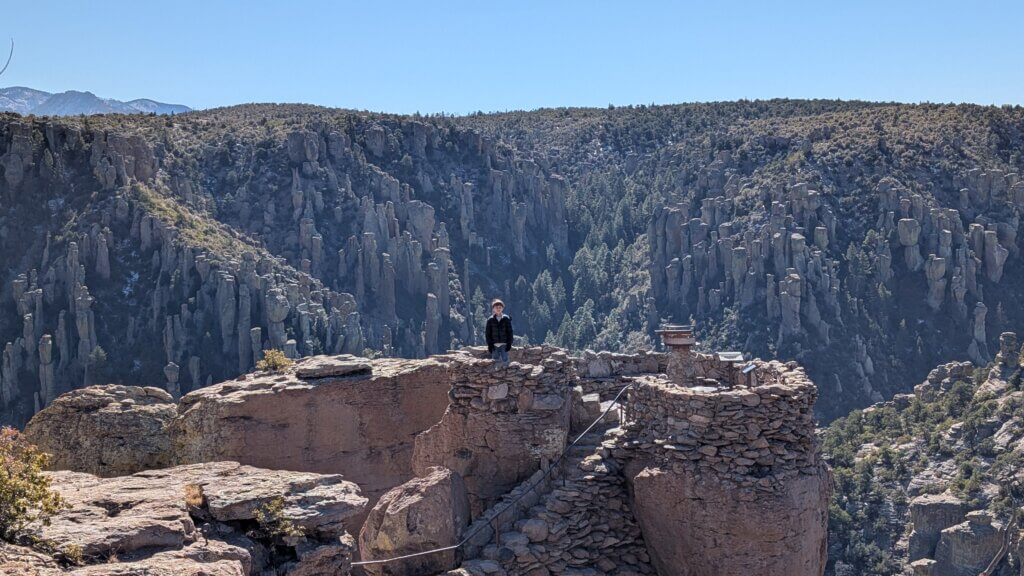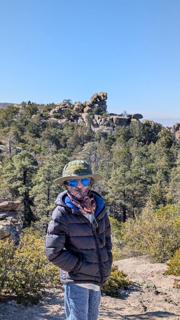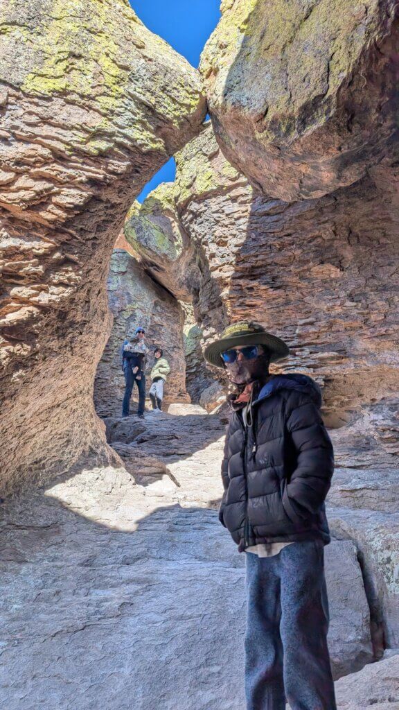 Today was super cold! We were dressed warm, but the wind made it feel extra cold! The Dweks met up with us again at Chiricahua National Monument. The park itself was beautiful and full of hoodoos and amazing rock formations. The visitor center has a Junior Ranger program and gives you a backpack to borrow with supplies for the hikes for the kids to use and learn more about the sites.