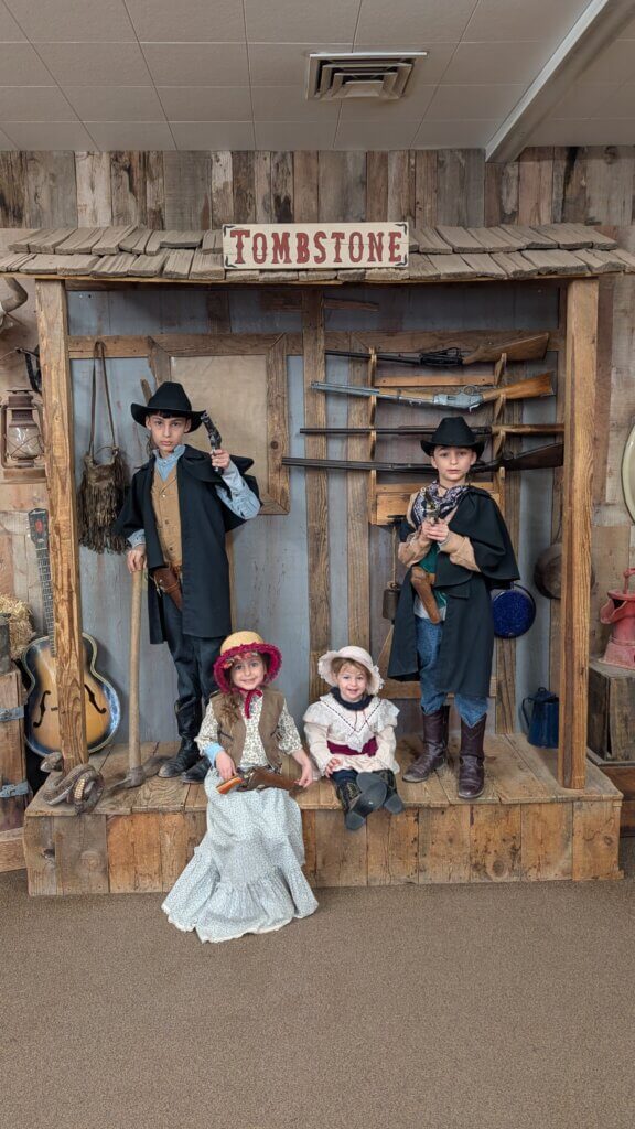 Our next adventure was in Tombstone, AZ. We explored the recreated old western town, watched a gunfight at the O.K. Corral and took western photos in “olden clothing.” It was more fun than we expected!