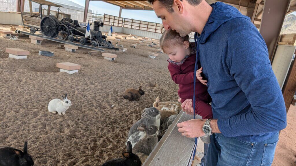 The original plan was to spend the night in Silver Spur Homestead, a tent style glamping experience. The set up was really authentic and we enjoyed hot dogs cooked in the fire. However, Rita decided that it was simply too cold to spend the night in those conditions (25 degrees) without a real room and we audibled to sleeping in a hotel in Tucson. We missed out on the tent experience, but were thrilled to be in a warm room, even if Sharon didn’t have a crib.
