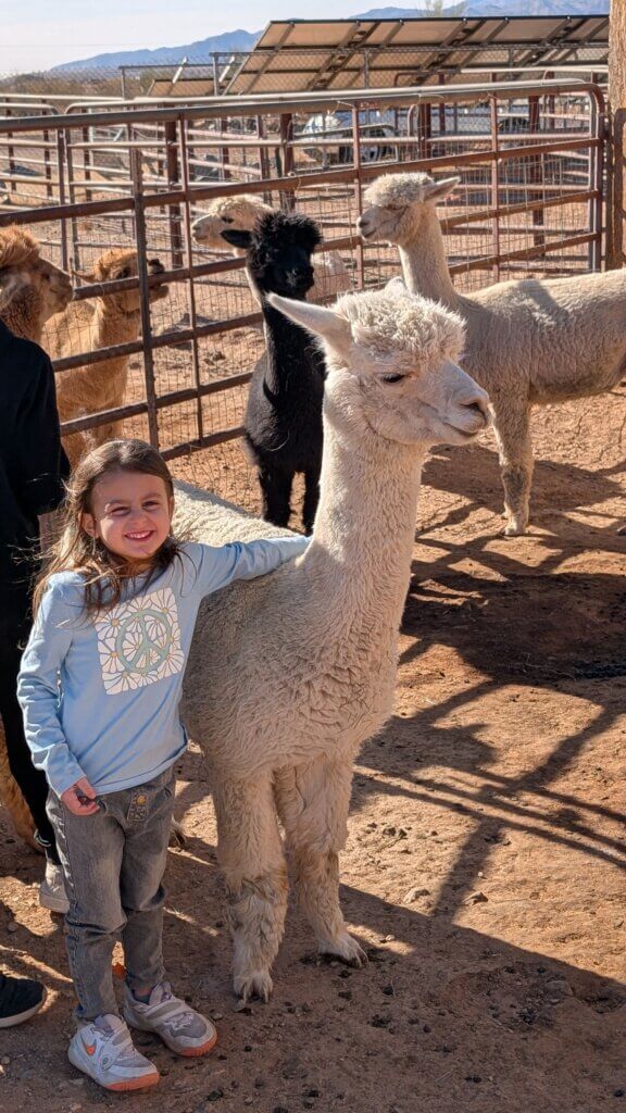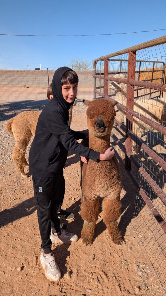 On Friday we headed north towards an alpaca ranch. We spent an hour learning about these beautiful animals and cuddling with them. It was the highlight of Allen’s trip! We learned that alpacas mate when the male sings to the female, the female can “pause” her pregnancy and that they are herd animals. Alpacas are not kosher, because although they chew their cud and have split feet they do not have hooves. The animals were mostly friendly and we had fun feeling their soft fur and taking pictures with them.