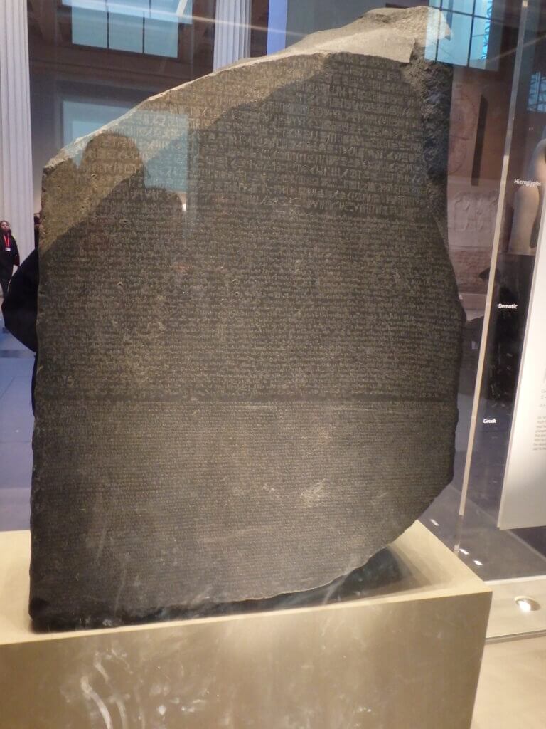 British Museum – We spent the afternoon in the British Museum. We joined a docent tour of some of the museum highlights. There are a ton of famous and important pieces to see here, including the Elgin marbles (from the Greek Parthenon), the Rosetta Stone (from Egypt), the Lindow Man (thousand year old man turned into leather) and the Lewis Chess set.